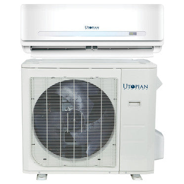 The 36,000 BTU Utopian Systems Split Air Conditioner keeps indoor gardens cool and air quality high, with a higher SEER rating and improved performance. Installation is also now quicker and easier than ever with a bundled quick-connect line set preinstalled on the indoor unit, plus a wiring harness for simplified power connection. Incorporating an indoor and outdoor unit, the split design can be more cost-effective and easier to maintain than central air and less noisy and obtrusive than a window unit. An included heat pump also doubles this models utility. Auto-restart, a 24-hour programmable timer, multiple fan speeds and remote-controlled operation ensure optimal performance. A carbon air filter helps eliminate harsh odors and deactivate harmful chemical gases. Low-ambient operation continues to cool indoors even when outside temperatures fall below 55 degrees Fahrenheit. Recommended for areas up to 2,000 square feet. Requires hardwiring to a 240-volt power source; 18.3 amps. ETL-listed and includes a one-year warranty.