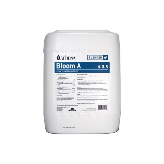 Add 2-7 mL of Athena Bloom A per gallon of water during the flowering phase.